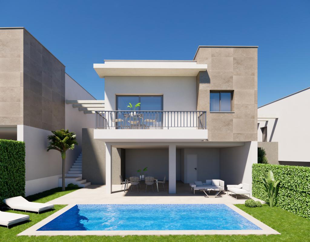 Elegante residencial formado por 8 viviendas unifamiliares independientes con una superficie de 142 m2, con todas las dependencias principales en planta baja para mayor comodidad, en parcelas que van desde 274 a 332 m2. Las viviendas constan de tres dormitorios, tres baños, salón, cocina, lavadero y balcón mirador en el salón. Uno de los baños está integrado en el dormitorio principal y otro situado en el porche inferior