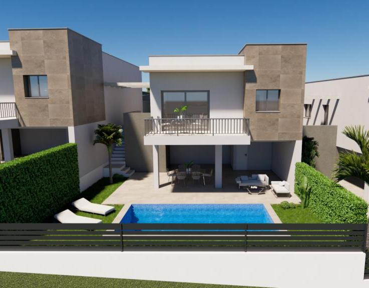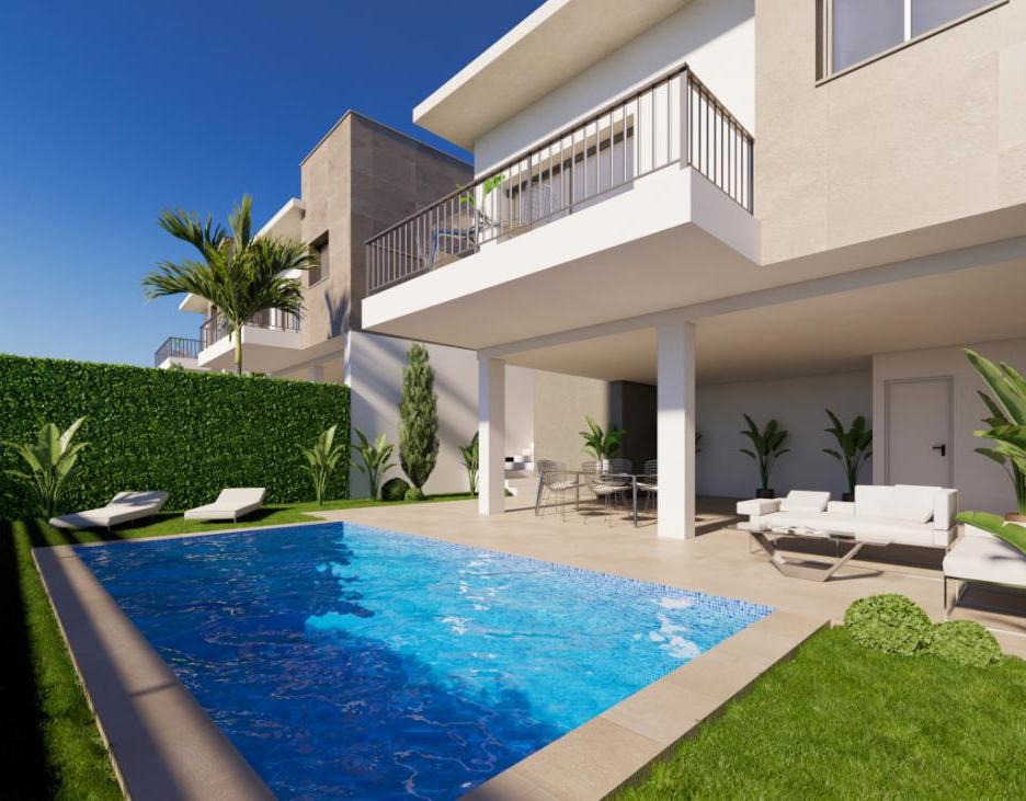 Las viviendas están orientadas al sur, y en la planta inferior cuentan con porche de 42 m2 y piscina de 3 x6 m . También cuentan con aparcamiento exterior en superficie para dos vehículos y amplias terrazas